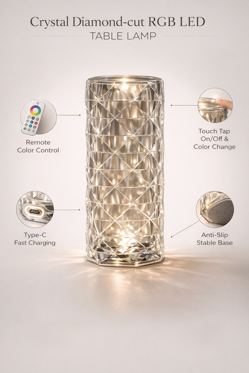 LOVEDECOR Crystal Rose Diamond Cut RGB LED Lamp