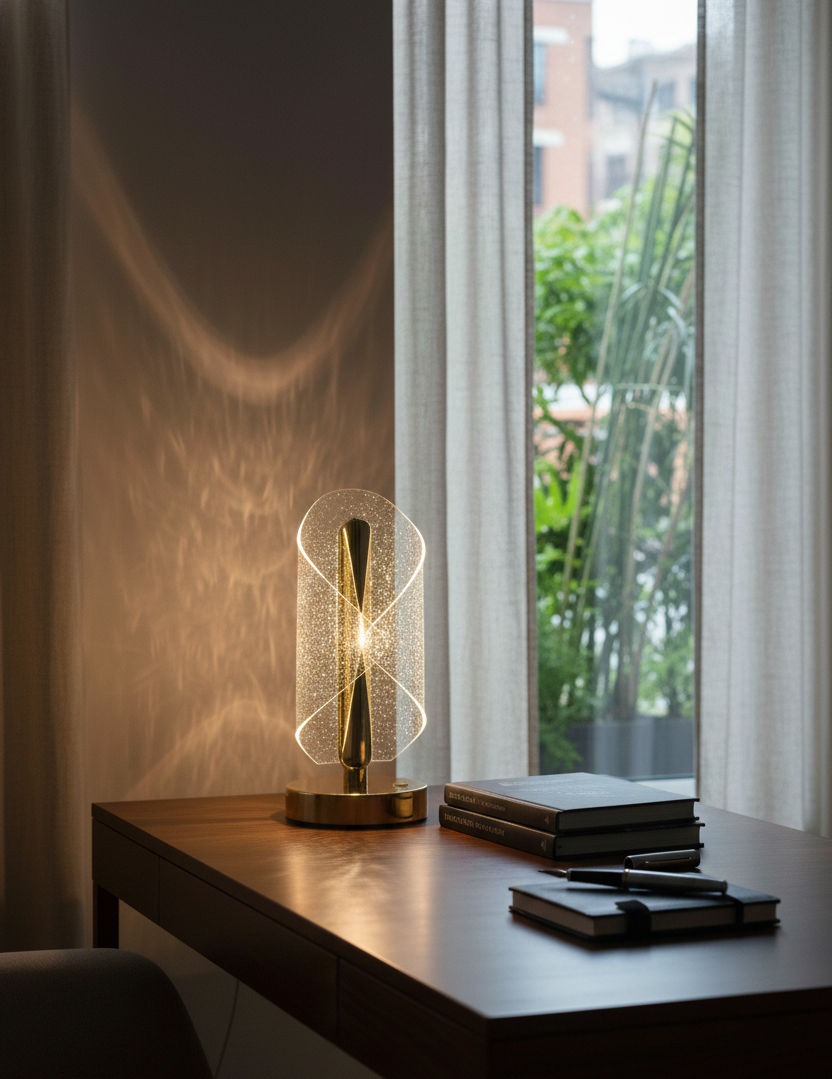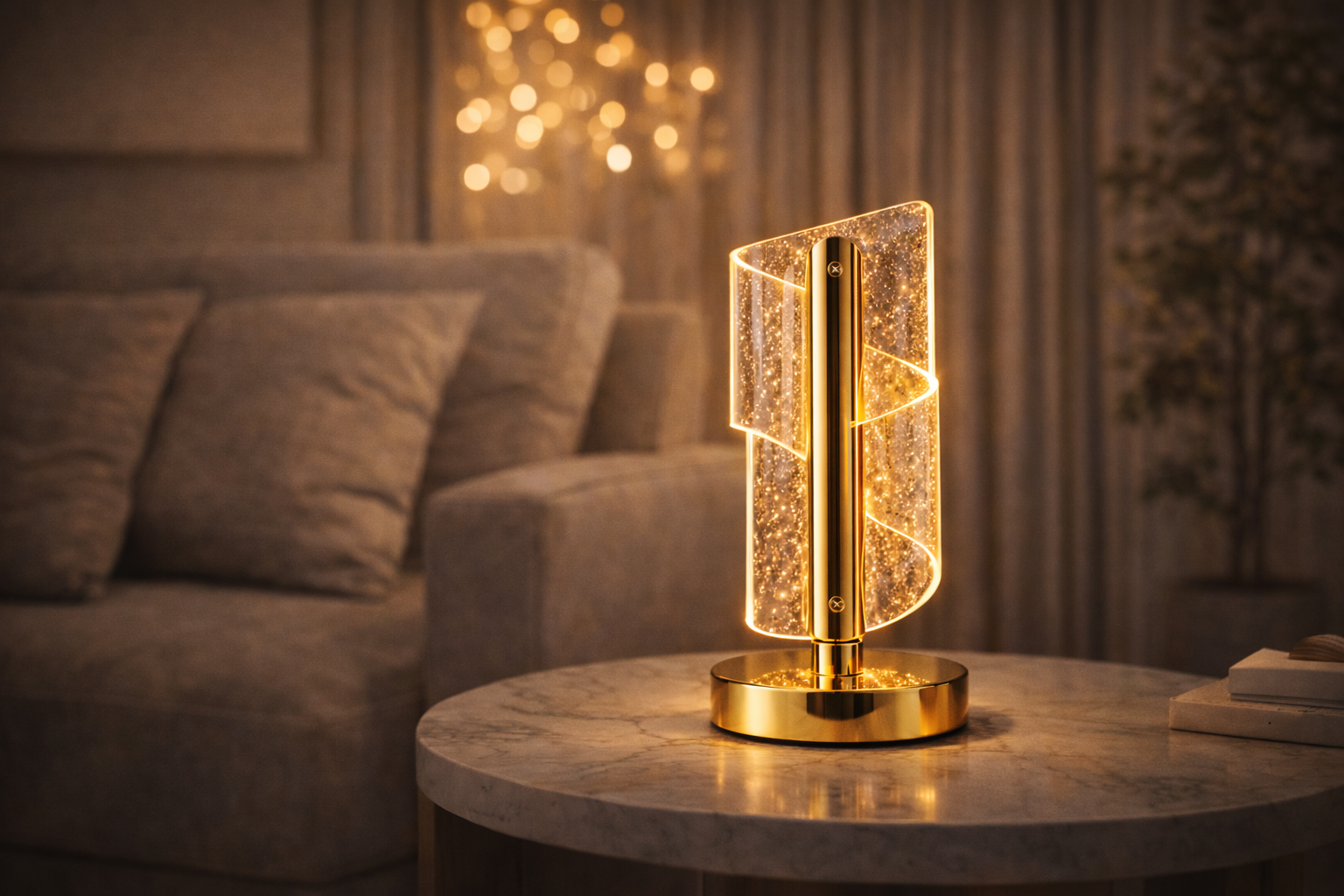 LOVEDECOR Crystal Acrylic LED Table Lamp with Gold Flakes